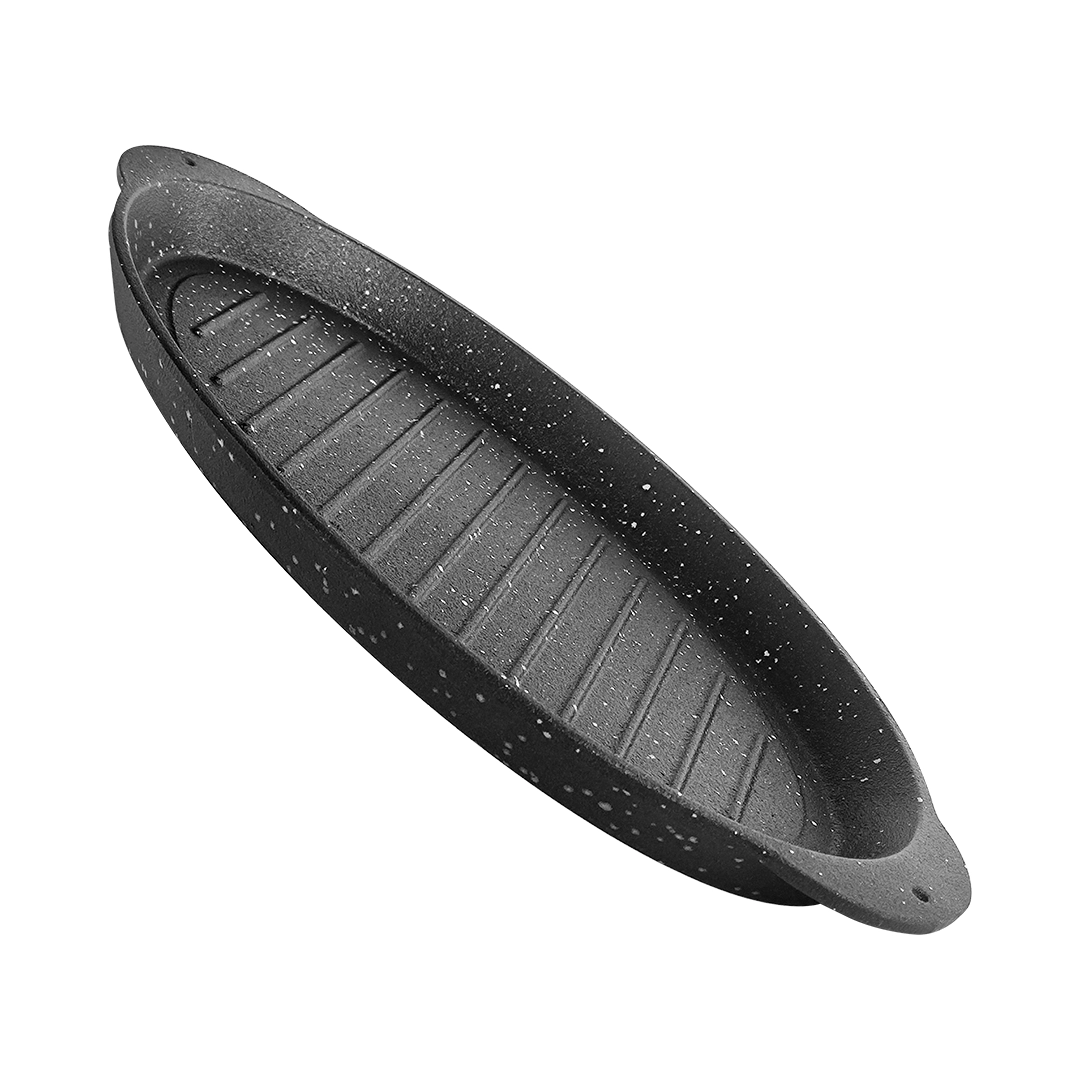 استیک پز یک ماهیتابه بیضی شکل خط دار یا همان تابه گریل است. در واقع یک وسیله آشپزی بسیار پرکاربرد است که در هر خانهای لازم است و تمام اعضای خانواده به آن نیاز پیدا میکنند. این ماهیتابه طراحی بیضی شکل دارد، در هر طرفش دستگیره ارگونومیک از جنس خود بدنه دارد که با بدنه یک تکه است و جنس آن از چدن است.